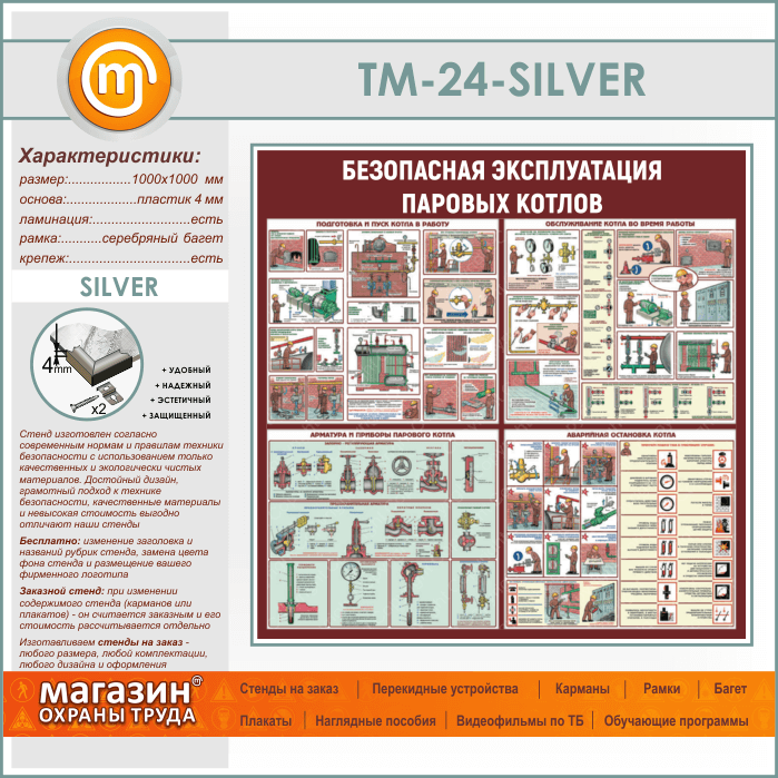 Стенд «Безопасная эксплуатация паровых котлов» (TM-24-SILVER) в Великом Новгороде купить
