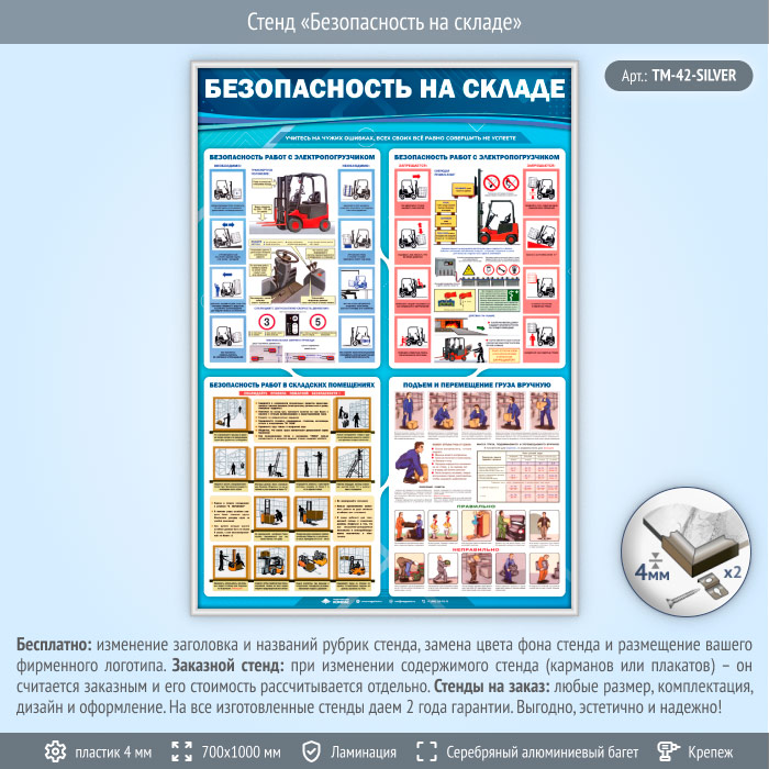 Стенд «Безопасность на складе» (TM-42-SILVER) в Великом Новгороде купить