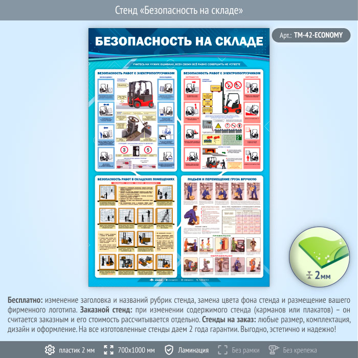 Стенд «Безопасность на складе» (TM-42-ECONOMY) в Великом Новгороде купить