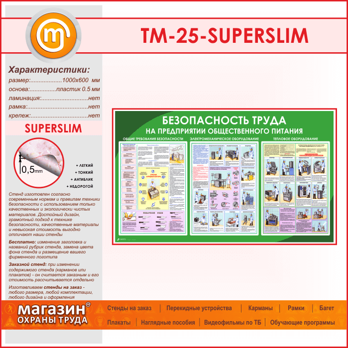 Стенд «Безопасность труда на предприятиях общественного питания» (TM-25-SUPERSLIM) в Великом Новгороде купить