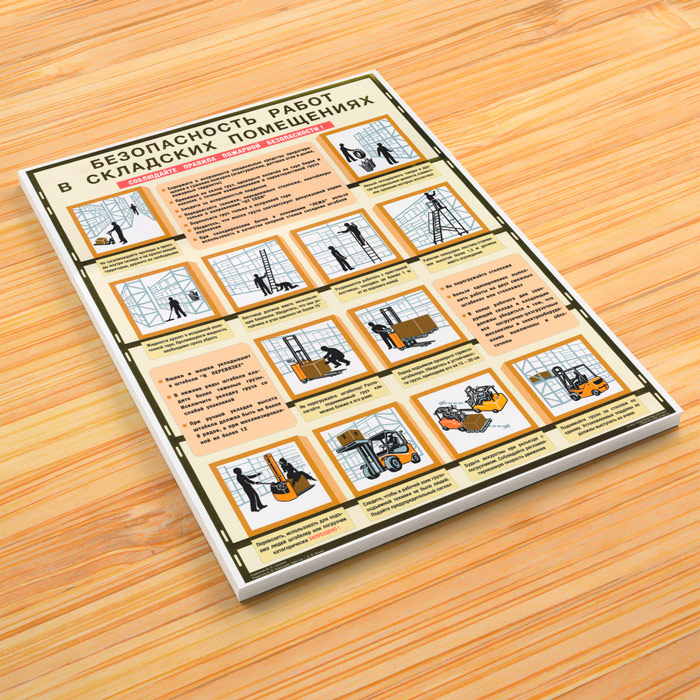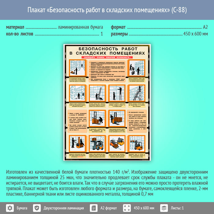 Плакат «Безопасность работ в складских помещениях» (С-88, ламинированная бумага, А2, 1 лист) в Великом Новгороде купить