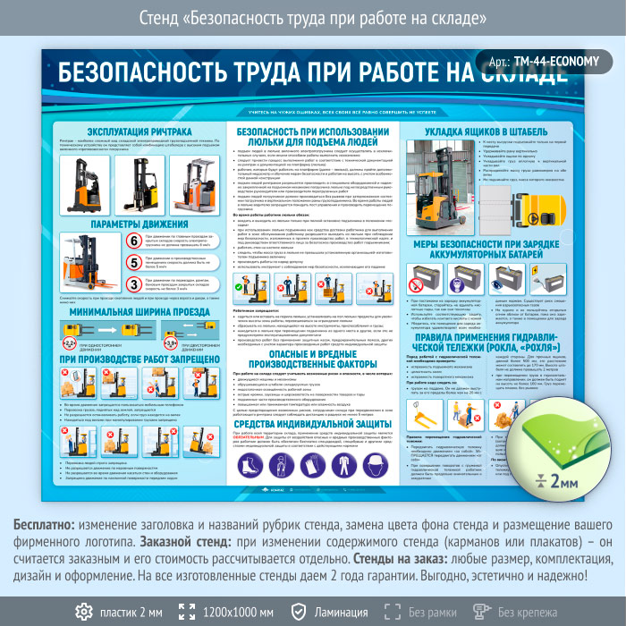 Стенд «Безопасность труда при работе на складе» (TM-44-ECONOMY) в Великом Новгороде купить