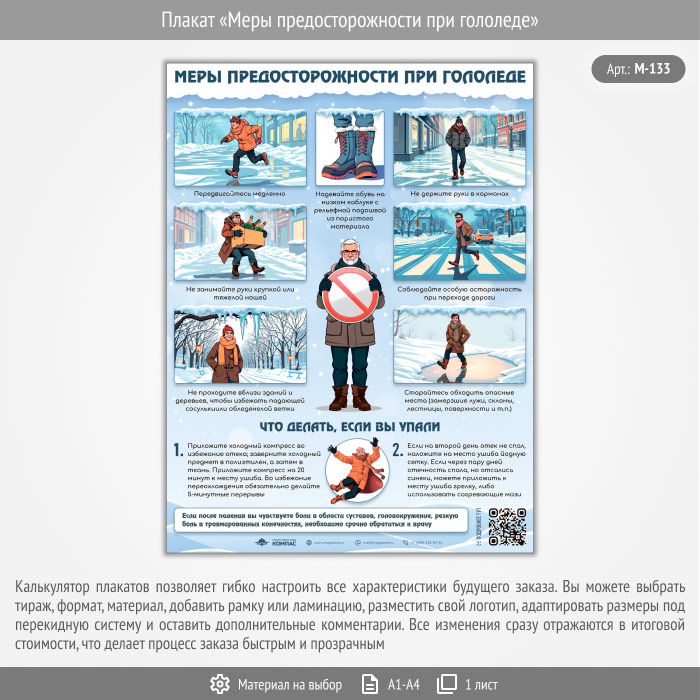 Плакат «Меры предосторожности при гололеде» с QR (М-133, 1 лист) в Великом Новгороде купить