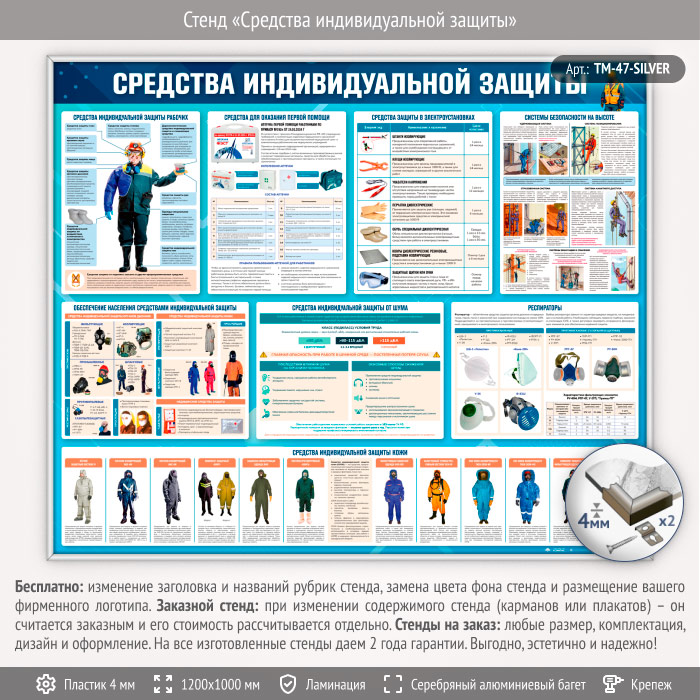 Стенд «Средства индивидуальной защиты» (TM-47-SILVER) в Великом Новгороде купить