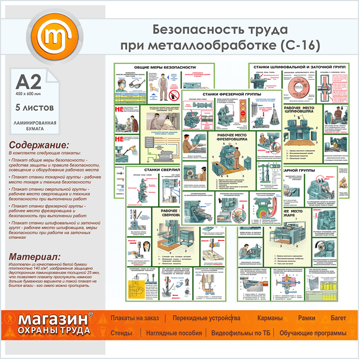 Плакат «Безопасность работ на металлообрабатывающих станках» (С-16, ламинированная бумага, А2, 5 листов) в Великом Новгороде купить