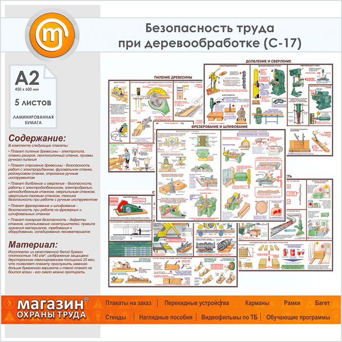 Плакаты «Безопасность труда при деревообработке» (С-17, ламинированная бумага, А2, 5 листов) в Великом Новгороде купить