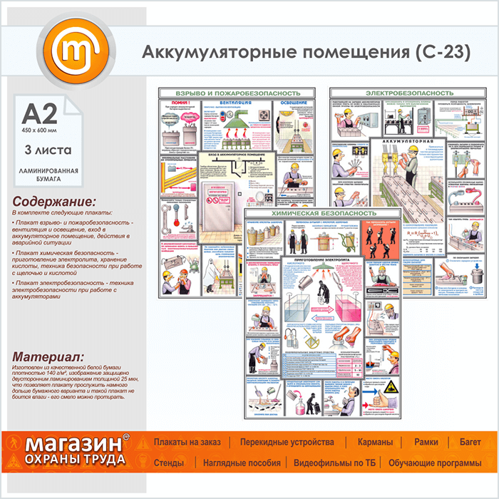 Плакаты «Аккумуляторные помещения» (С-23, ламинированная бумага, А2, 3 листа) в Великом Новгороде купить