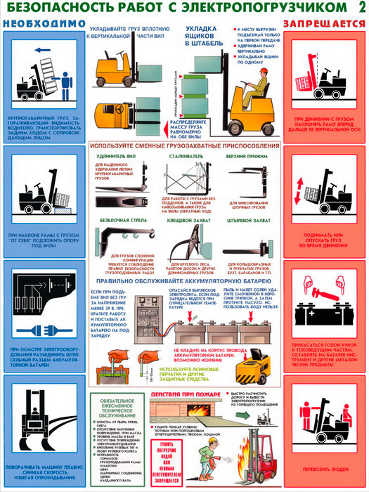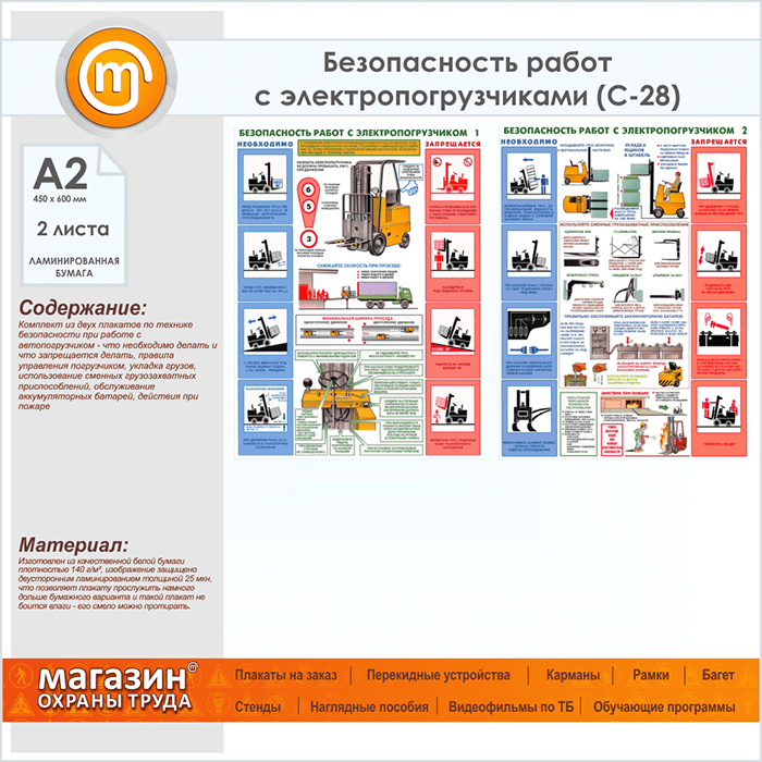 Плакаты «Безопасность работ с электропогрузчиками» (С-28, ламинированная бумага, А2, 2 листа) в Великом Новгороде купить