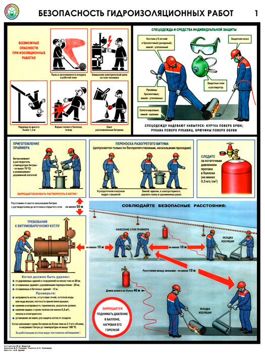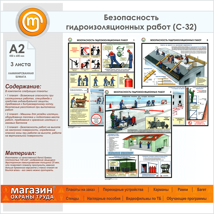 Плакаты «Безопасность гидроизоляционных работ» (С-32, ламинированная бумага, А2, 3 листа) в Великом Новгороде купить