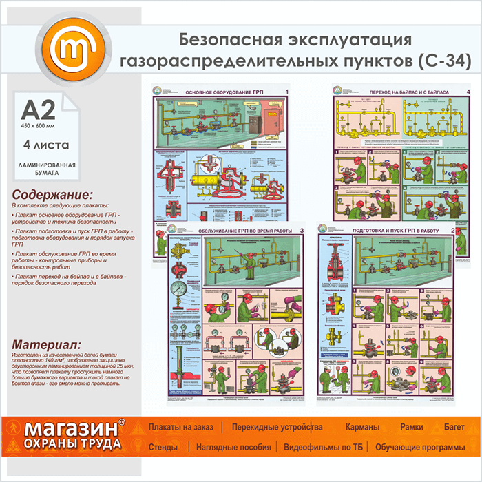 Плакаты «Безопасная эксплуатация газораспределительных пунктов» (С-34, ламинированная бумага, А2, 4 листа) в Великом Новгороде купить