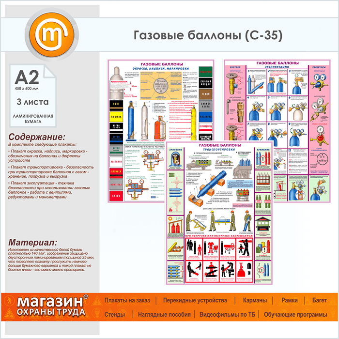 Плакаты «Газовые баллоны» (С-35, ламинированная бумага, А2, 3 листа) в Великом Новгороде купить