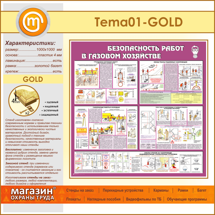 Стенд «Безопасность работ в газовом хозяйстве» (TM-01-GOLD) в Великом Новгороде купить