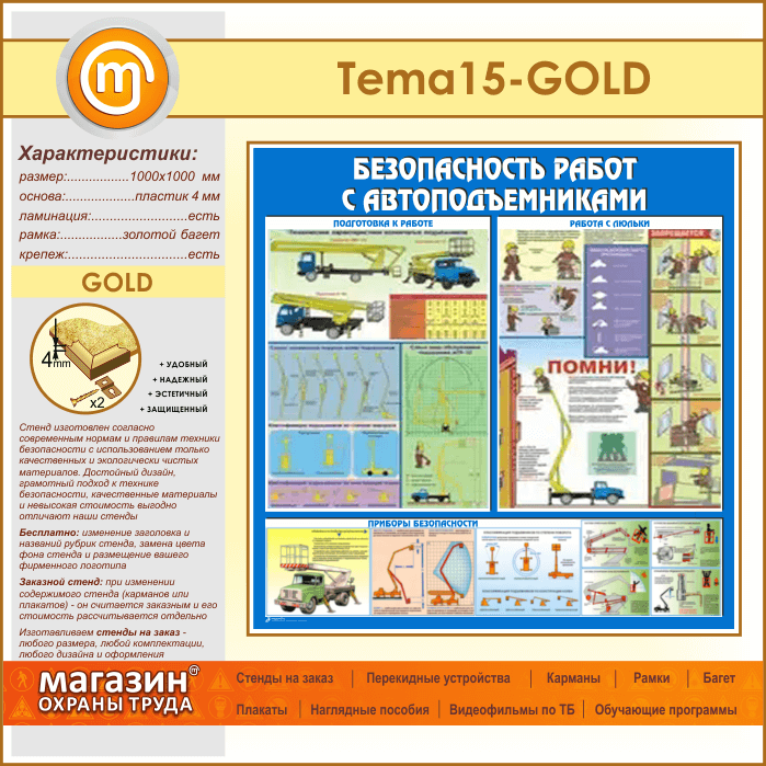 Стенд «Безопасность работ с автоподъемниками» (TM-15-GOLD) в Великом Новгороде купить
