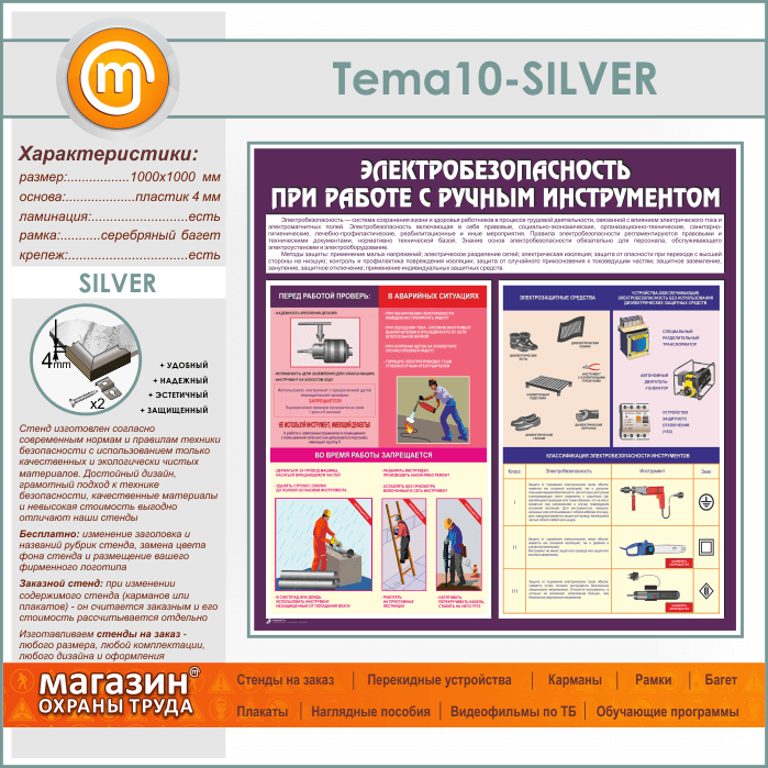 Стенд «Электробезопасность при работе с ручным инструментом» (TM-10-SILVER) в Великом Новгороде купить