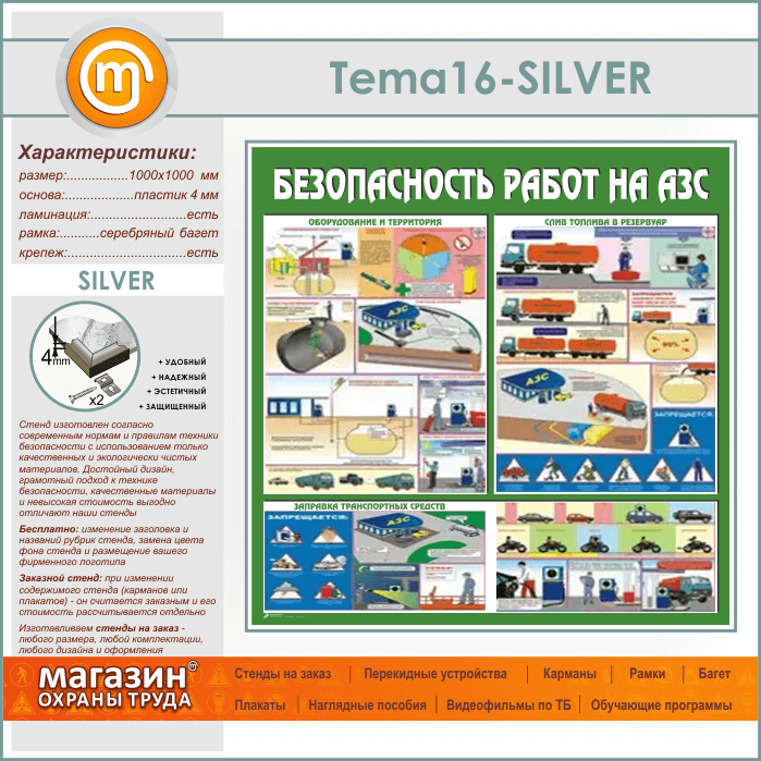 Стенд «Безопасность работ на автозаправочных станциях» (TM-16-SILVER) в Великом Новгороде купить