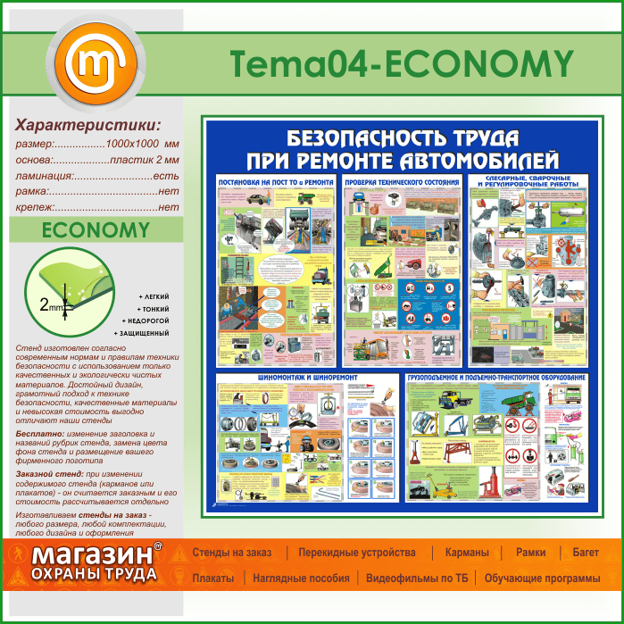 Стенд «Безопасность труда при ремонте автомобилей» (TM-04-ECONOMY) в Великом Новгороде купить
