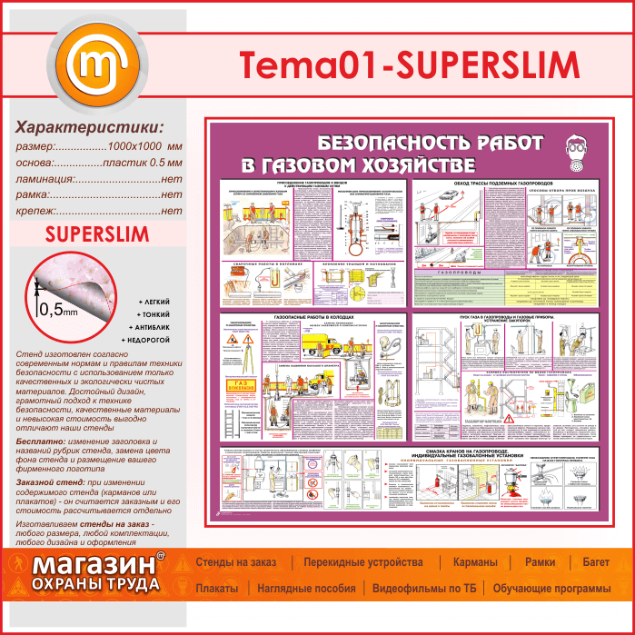 Стенд «Безопасность работ в газовом хозяйстве» (TM-01-SUPERSLIM) в Великом Новгороде купить