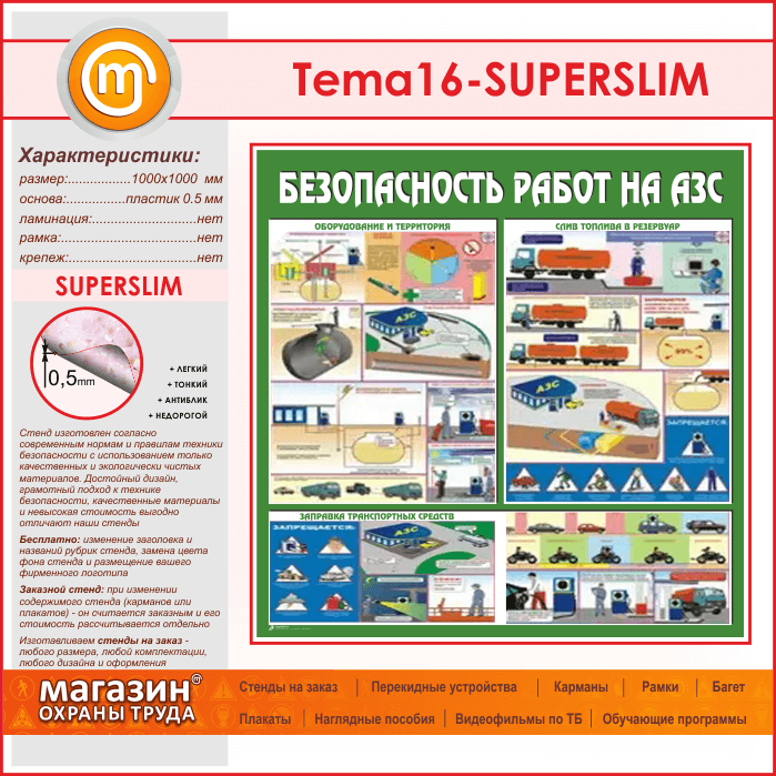 Стенд «Безопасность работ на автозаправочных станциях» (TM-16-SUPERSLIM) в Великом Новгороде купить