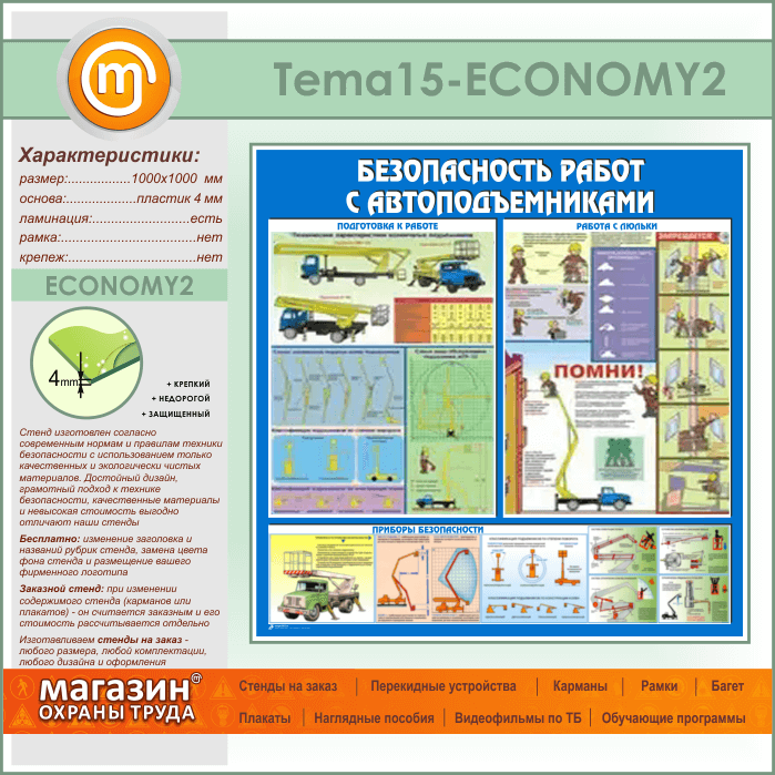 Стенд «Безопасность работ с автоподъемниками» (TM-15-ECONOMY2) в Великом Новгороде купить