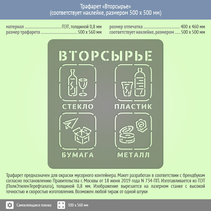 Трафарет «Вторсырье» (соответствует наклейке, размером 500х500 мм) в Великом Новгороде купить