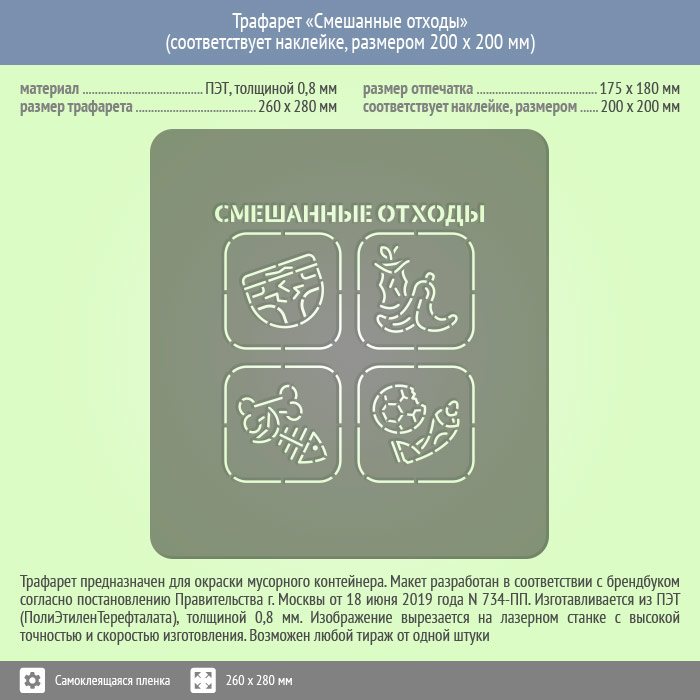 Трафарет «Смешанные отходы» (соответствует наклейке, размером 200х200 мм) в Великом Новгороде купить