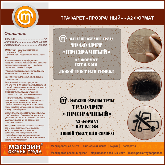 Трафарет «ПРОЗРАЧНЫЙ» (А2 формат, ПЭТ 0,8 мм) в Великом Новгороде купить