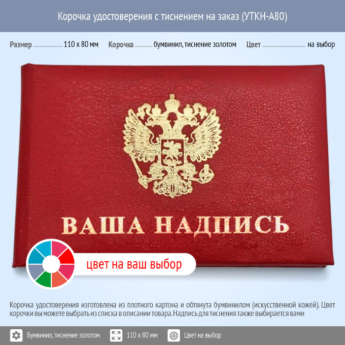 Бланк удостоверения с тиснением на заказ, цвет на выбор, 110 x 80 мм (УТКН-А80) | Бланк удостоверения с тиснением на заказ, цвет на выбор, 110 x 80 мм (УТКН-А80) |