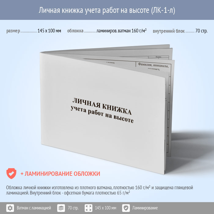 Личная книжка учета работ на высоте (с ламинир. обложки, ЛК-1-л) | Личная книжка учета работ на высоте (с ламинир. обложки, ЛК-1-л) |