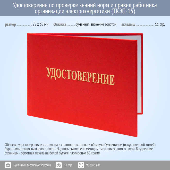 Бланк удостоверения по проверке знаний норм и правил работника организации электроэнергетики (ТКЭП-15) в Великом Новгороде купить