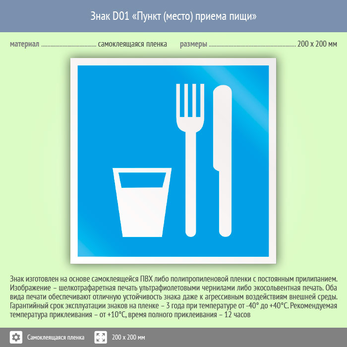 Знак D01 «Пункт (место) приема пищи» (пленка, 200х200 мм) в Великом Новгороде купить
