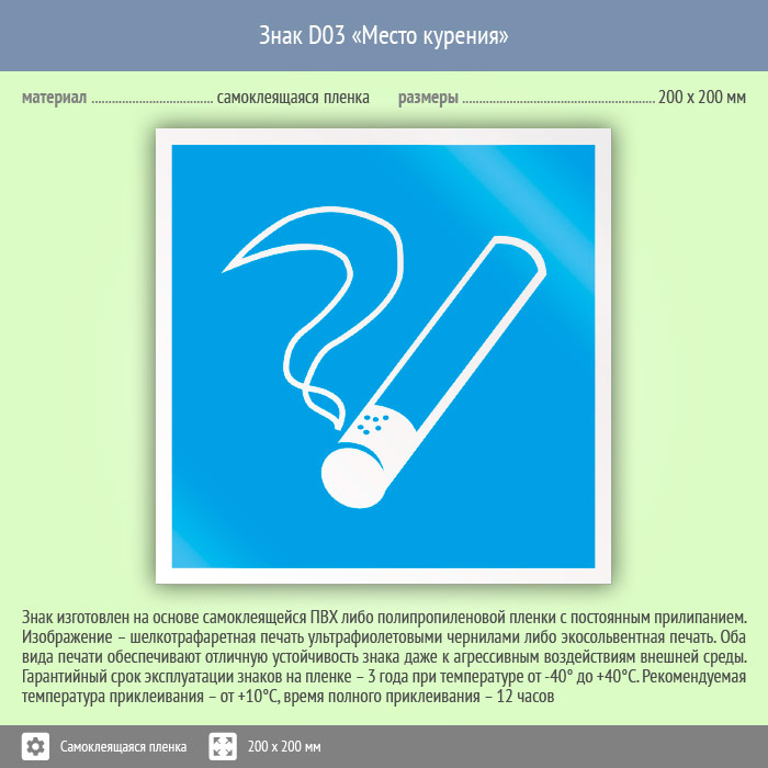 Знак D03 «Место курения» (пленка, 200х200 мм) в Великом Новгороде купить