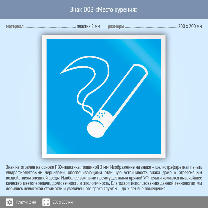 Знак D03 «Место курения» (пластик, 200х200 мм) в Великом Новгороде купить