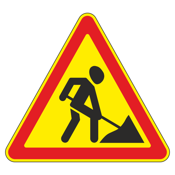 Дорожный знак 1.25 «Дорожные работы» (временный) (металл 0,8 мм, II типоразмер: сторона 900 мм, С/О пленка: тип А инженерная) в Великом Новгороде купить
