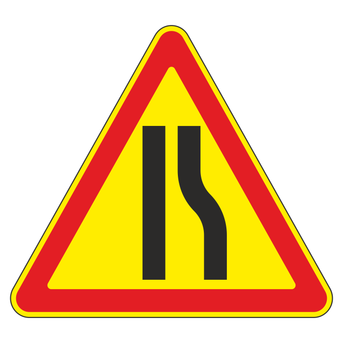 Дорожный знак 1.20.2 «Сужение дороги» (временный) (металл 0,8 мм, II типоразмер: сторона 900 мм, С/О пленка: тип Б высокоинтенсивная) в Великом Новгороде купить