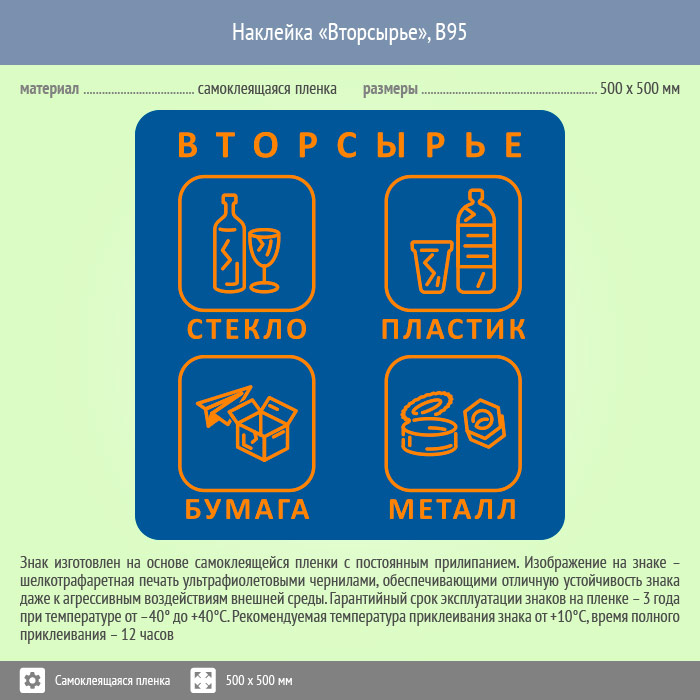 Наклейка на бак «Вторсырьё», B95 (пленка, 500х500 мм) в Великом Новгороде купить