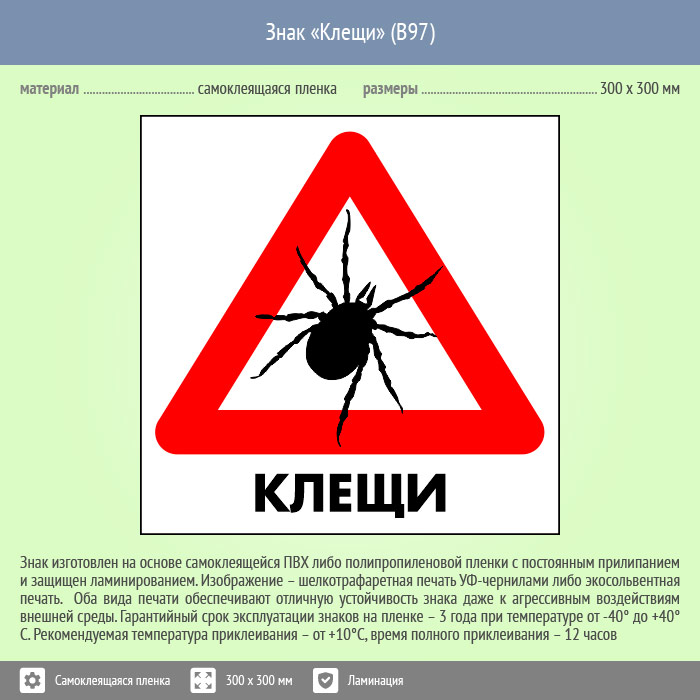 Знак «Клещи», B97 (пленка c ламинированием, 200х200 мм) в Великом Новгороде купить