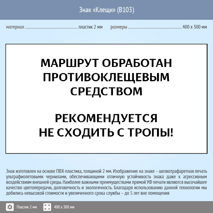 Знак «Клещи», B103 (пластик, 300х200 мм) в Великом Новгороде купить