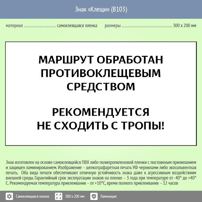 Знак «Клещи», B103 (пленка c ламинированием, 400х300 мм) в Великом Новгороде купить