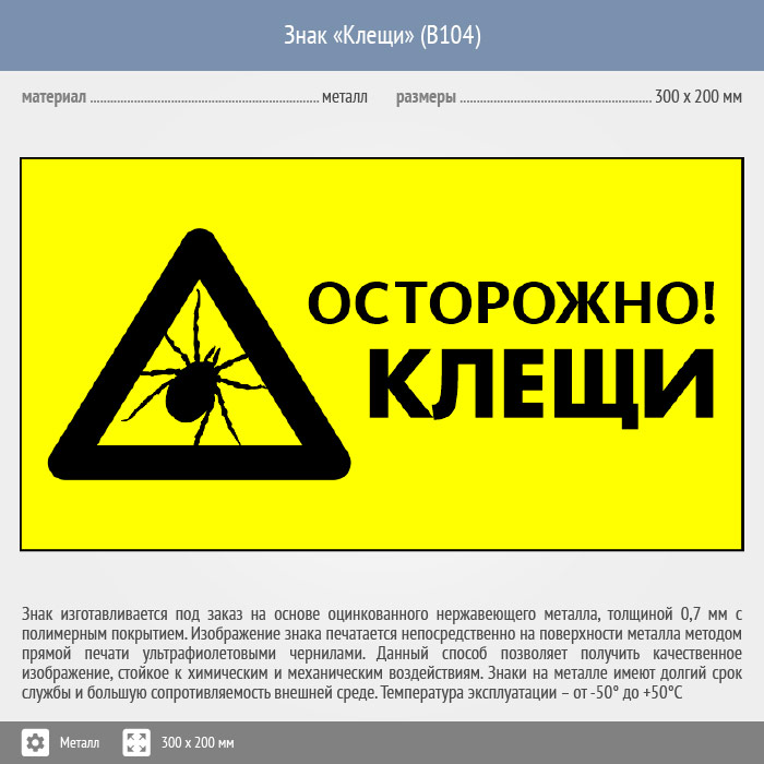 Знак «Осторожно! Клещи», B104 (металл, 400х300 мм) в Великом Новгороде купить