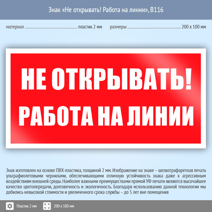 Знак «Не открывать! Работа на линии», B116 (пластик, 200х100 мм) в Великом Новгороде купить