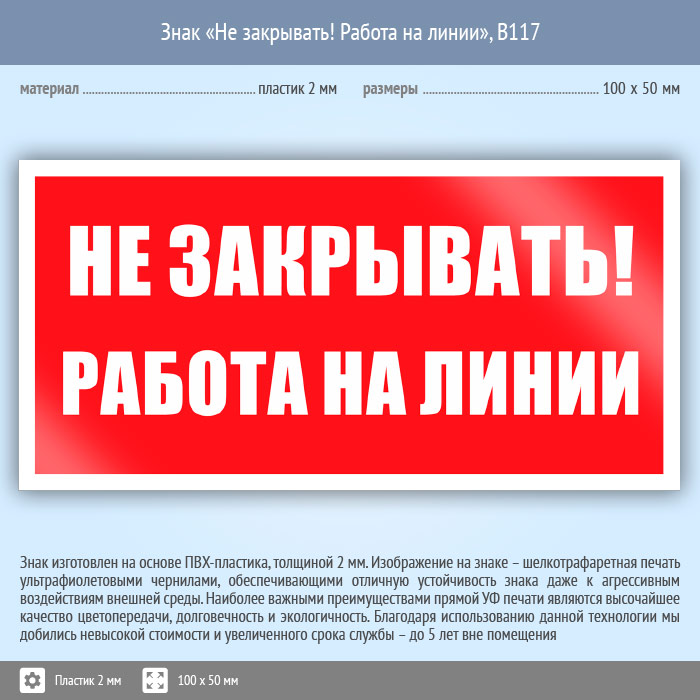 Знак «Не закрывать! Работа на линии», B117 (пластик, 100х50 мм) в Великом Новгороде купить