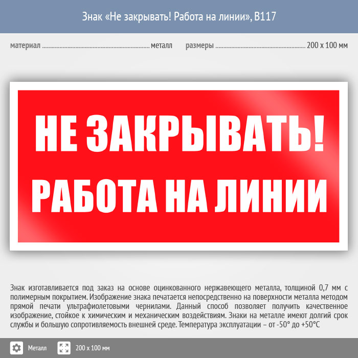 Знак «Не закрывать! Работа на линии», B117 (металл, 200х100 мм) в Великом Новгороде купить