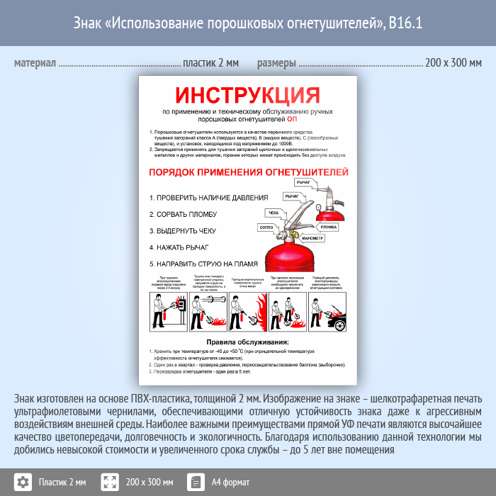 Знак «Использование порошковых огнетушителей», B16.1 (пластик, 200х300 мм) в Великом Новгороде купить