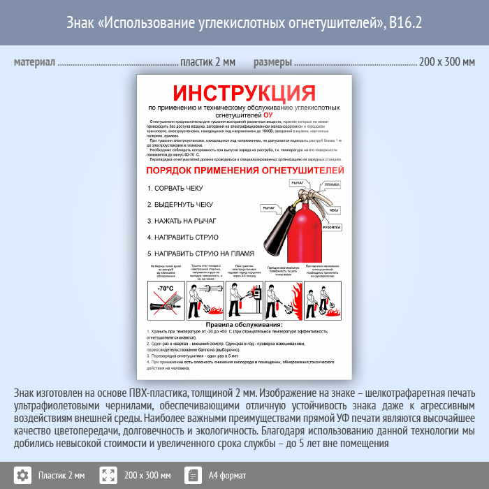 Знак «Использование углекислотных огнетушителей», B16.2 (пластик, 200х300 мм) в Великом Новгороде купить