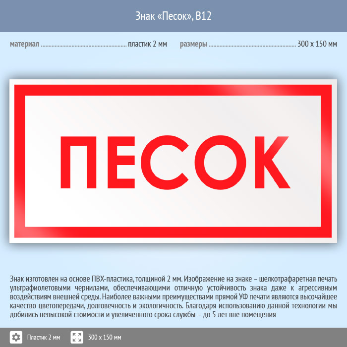 Знак «Песок», B12 (пластик, 300х150 мм) в Великом Новгороде купить