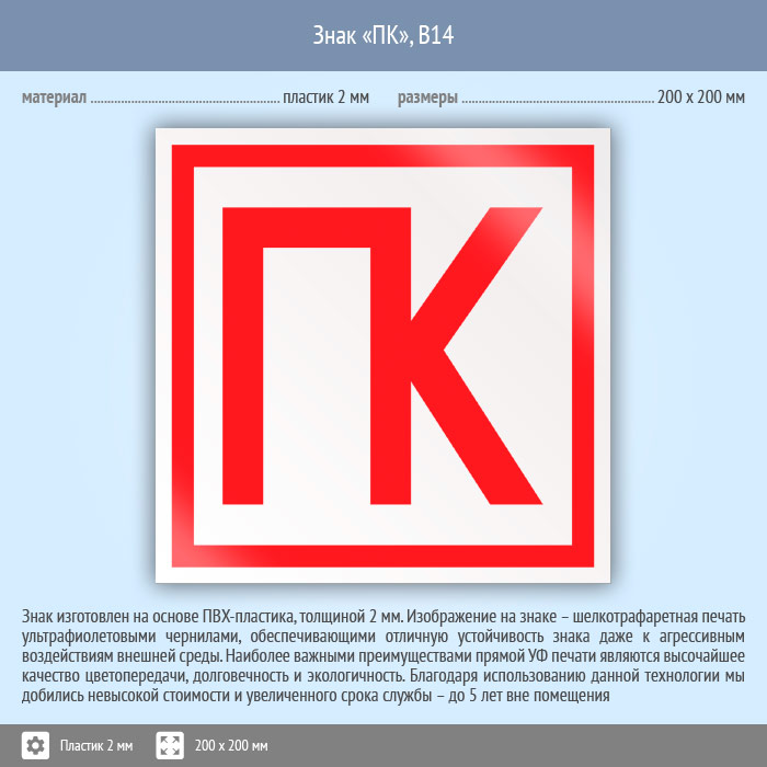 Знак «ПК», B14 (пластик, 200х200 мм) в Великом Новгороде купить