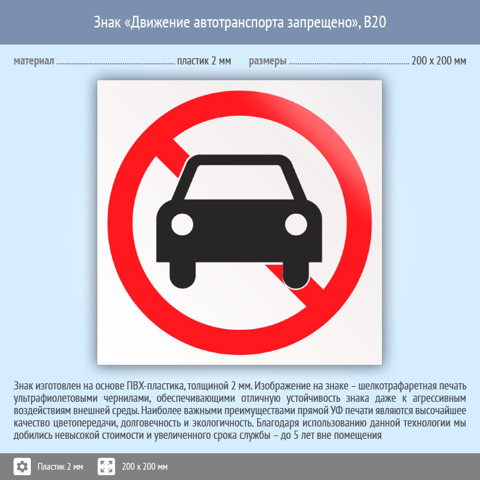 Знак «Движение автотранспорта запрещено», B20 (пластик, 200х200 мм) в Великом Новгороде купить