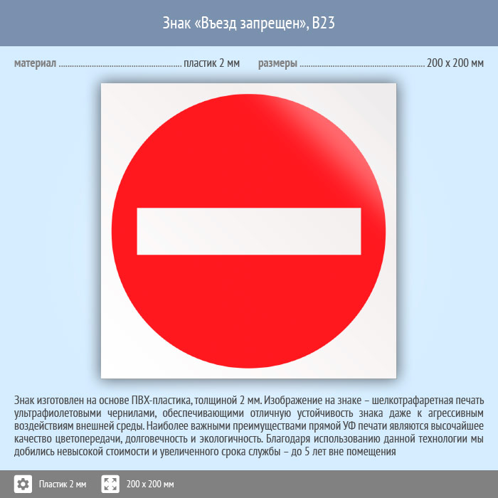 Знак «Въезд запрещен», B23 (пластик, 200х200 мм) в Великом Новгороде купить
