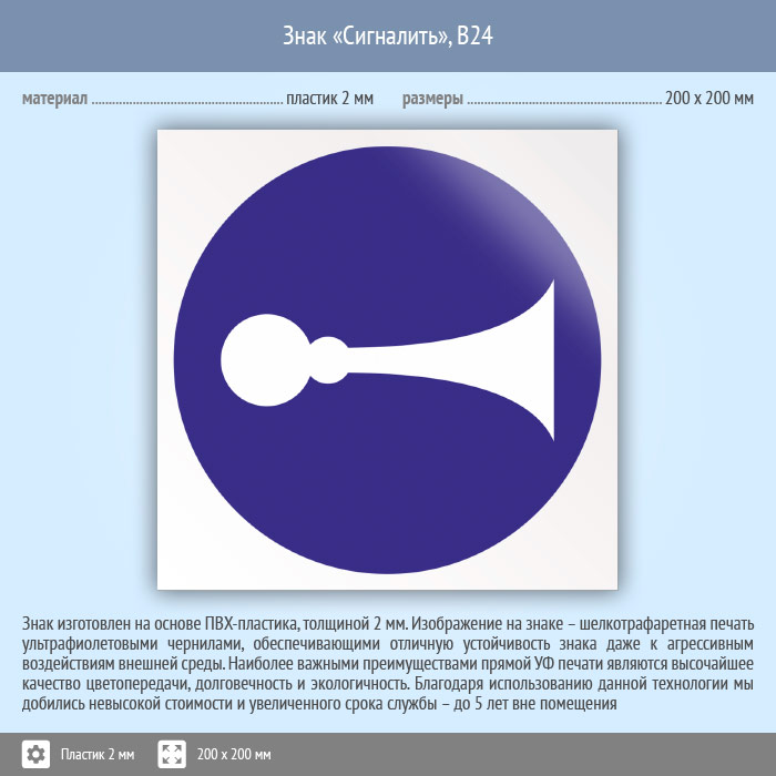 Знак «Сигналить», B24 (пластик, 200х200 мм) в Великом Новгороде купить