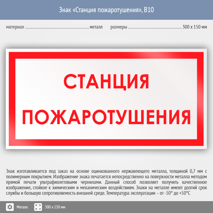 Знак «Станция пожаротушения», B10 (металл, 300х150 мм) в Великом Новгороде купить